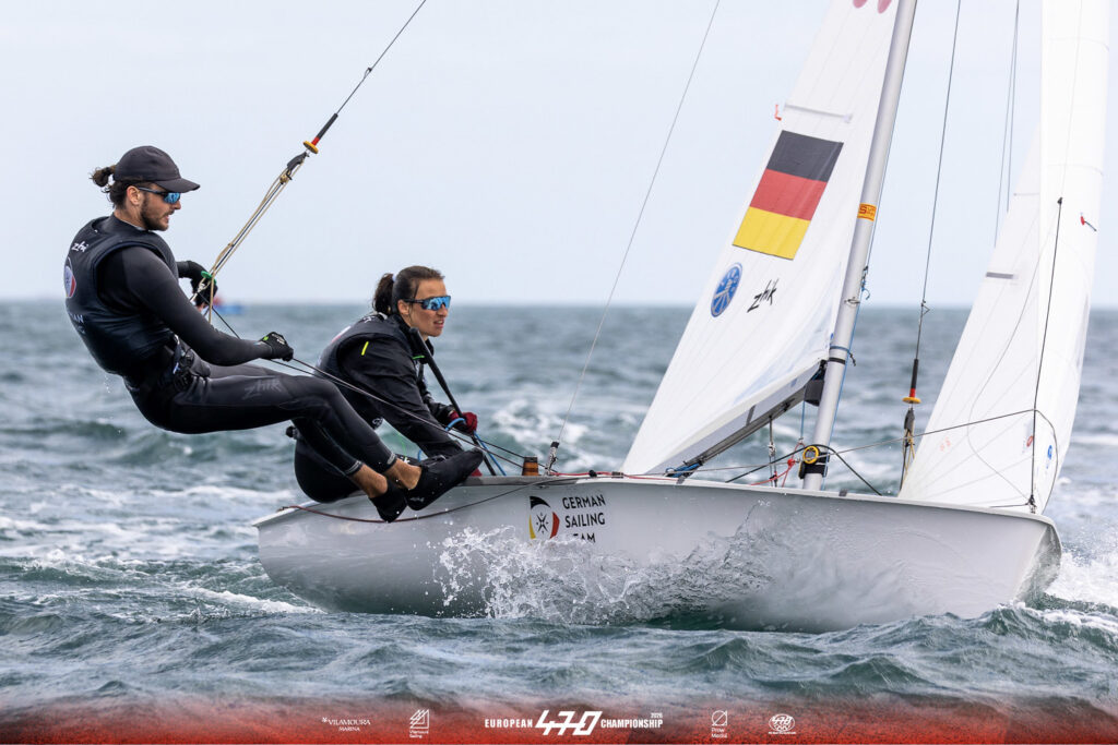 Die erste große Meisterschaft der neuen Saison ist vor Vilamoura mit zwei Medaillenrennen zu Ende gegangen. Die olympischen 470er-Mixed-Duos haben in Portugal ihre Europameister im neuen Testformat gesucht. Als beste deutsche Crew segelten Theresa Löffler und Christopher Hoerr (Deutscher Touring Yacht-Club/Segelclub Breitbrunn Chiemsee) auf Platz acht.