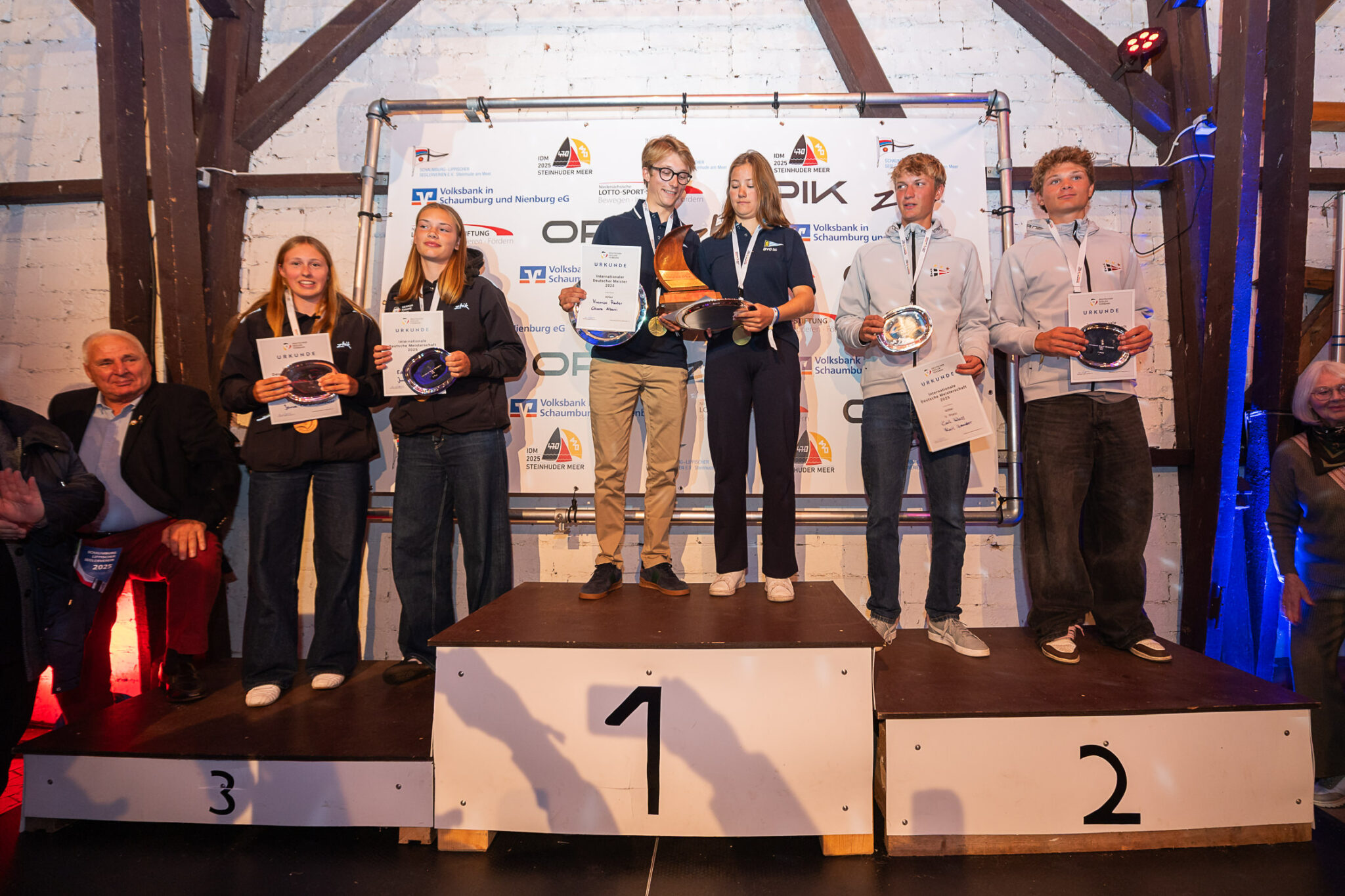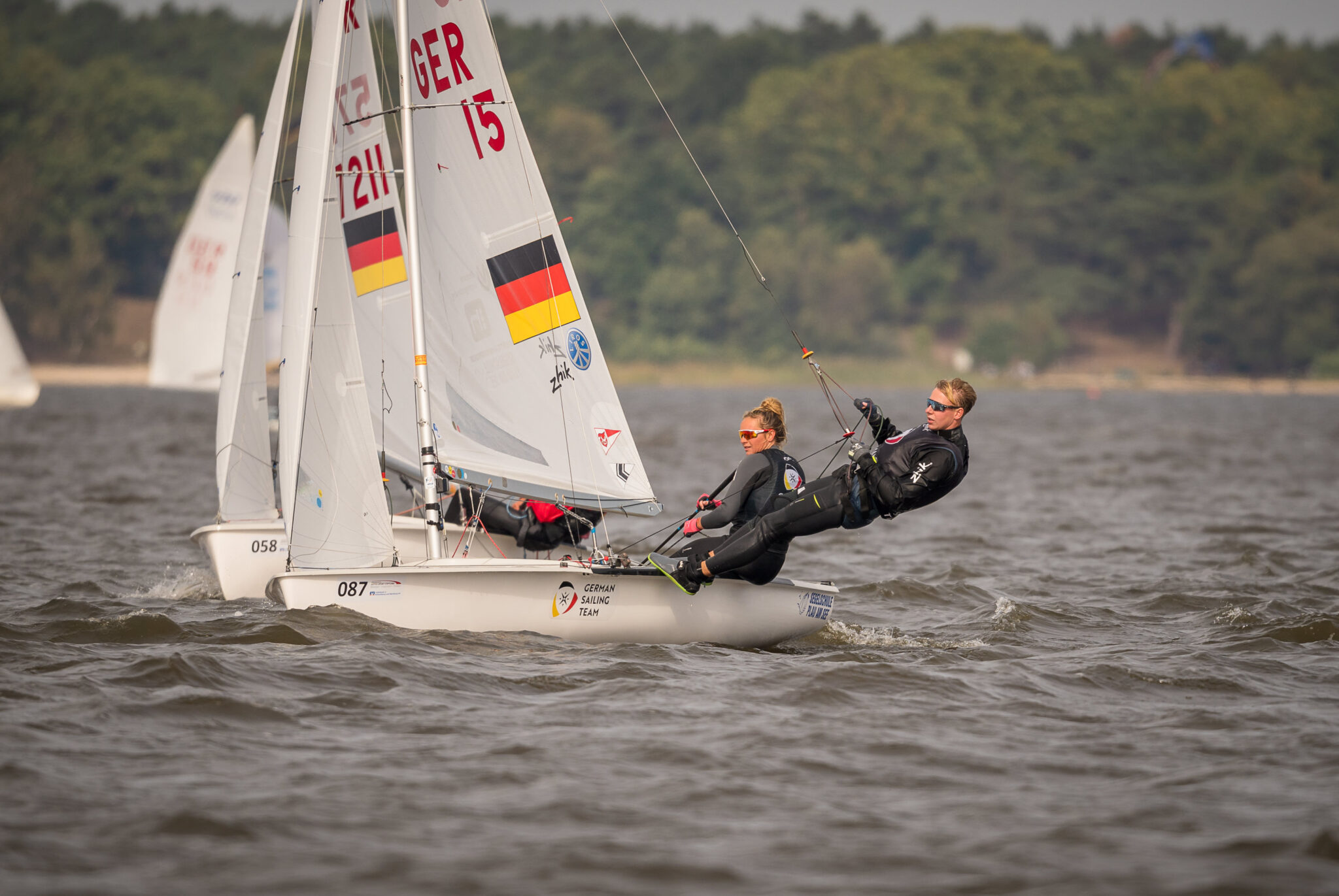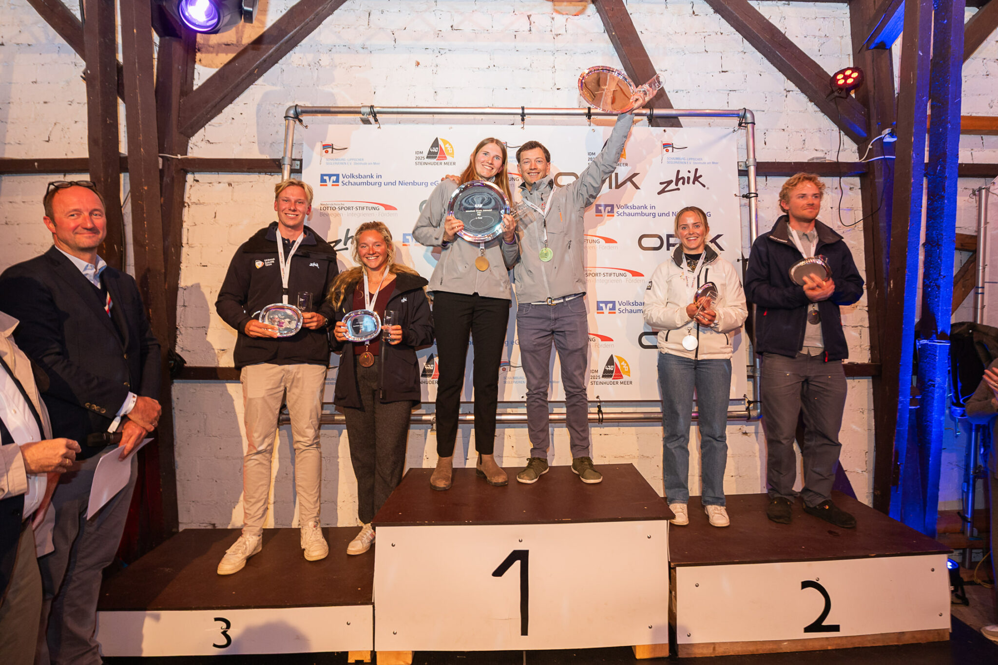 Nachdem sie bereits den Schweriner Sparkassen-Cup – die erste von drei Ausscheidungsregatten für die EM und WM 2026 – gewonnen hatten, knüpften Vincenzo Reuter (Bayerischer Yacht-Club/Münchener Yacht-Club) und Chiara Albani (BYC) auf dem Steinhuder Meer nahtlos an ihren Erfolg an. Mit 24 Punkten aus zehn Wettfahrten sicherten sie sich den Titel und brachten ausschließlich Top-Five-Ergebnisse in die Wertung ein. Nur zwei Punkte dahinter folgten Carl Wolf (Segel-Club Fraternitas 1891/Verein Seglerhaus am Wannsee) und Karl Lander (VSaW/Pro Sport Berlin).