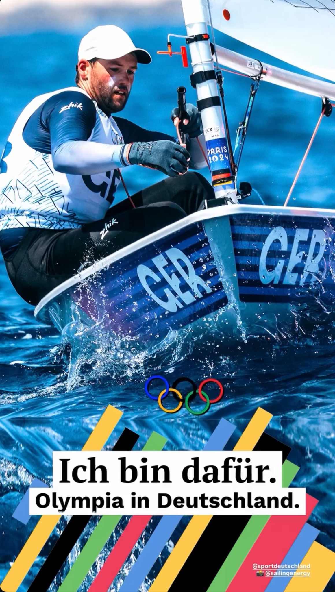 Unterstütze die Olympiabewerbung auf deinen Social Media-Kanälen. Der DOSB stellt hierfür Overlays zur Verfügung, die ihr ganz einfach über euer Lieblingsbild legen könnt. Markiert gerne unseren Account @deutscherseglerverband, den Account des DOSB @Sportdeutschland auf Instagram und nutzt die Hashtags #SegelsportDeutschland und #DafuerSeinIstAlles.